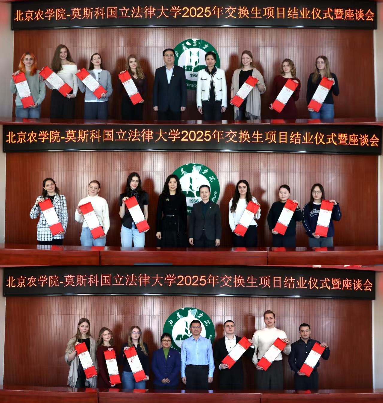 会上,武艳向莫斯科国立法律大学的同学们圆满完成学业表示祝贺,并指出在北农的学习期间,同学们不仅掌握了专业知识,更通过丰富多彩的校园活动与文化交流,深刻体验了中国文化的博大精深,用行动诠释了“学无止境,文化无界”。她希望同学们能将在中国的所见所感转化为桥梁,持续关注并参与中俄人文交流,成为传播友谊、促进相互理解的青年使者。