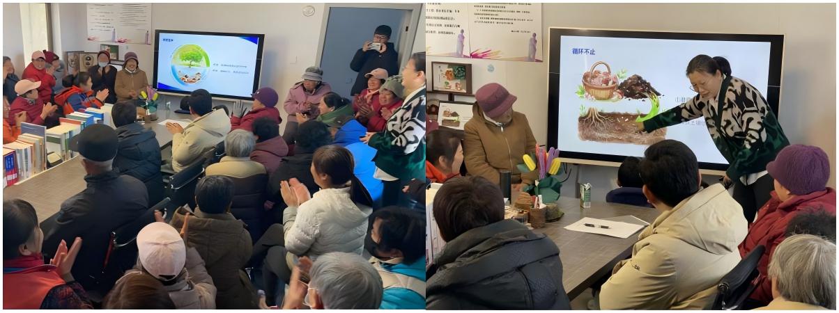 培训聚焦中央一号文件“发展农业新质生产力”与“推进农业农村绿色发展”的核心要求,围绕农业废弃物资源化、土壤质量提升、林下生态循环三大方向,重点讲授了地表覆盖、有机肥科学施用、林下食用菌种植三项实用技术。培训过程中,常丽红老师结合科技小院实践经验,将复杂的生态循环农业的专业理论转化为农户易于理解的乡土语言和具体案例,她通过引入“桃树枝的三种‘新职业’”这一生动比喻,清晰揭示了从废弃物资源化利用到果园空间高效开发的完整路径——不仅实现了“变废为宝”,更达成了“一地双收”,从而引导农户由传统种植者转向生态农业的践行者和低碳发展的贡献者。